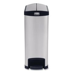 End Step StyleFoot pedal located on the narrow side of the container. Waste Receptacle Type: Indoor All-Purpose Waste Bin; Material(s): Stainless Steel; Application: Indoor All-Purpose Waste Disposal; Interior Volume Capacity: 13 gal.